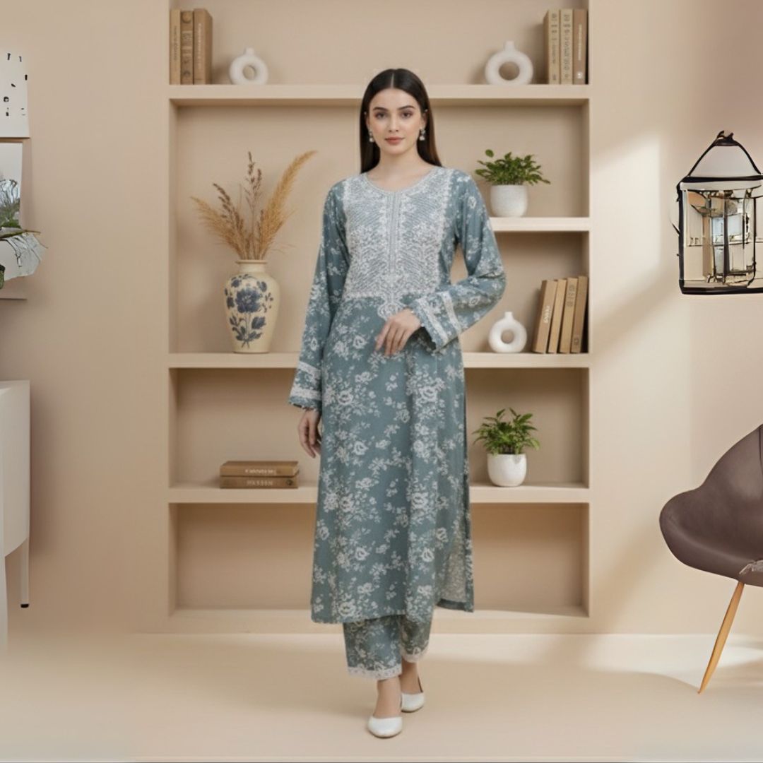 🌿 Details: Featuring delicate floral prints, elegant embroidery, and pearl accents on the sleeves for a graceful, elevated touch.